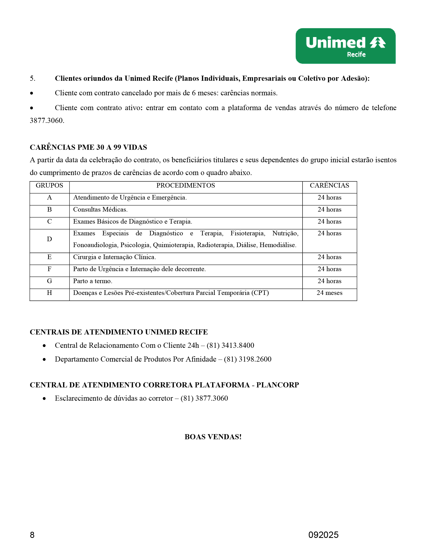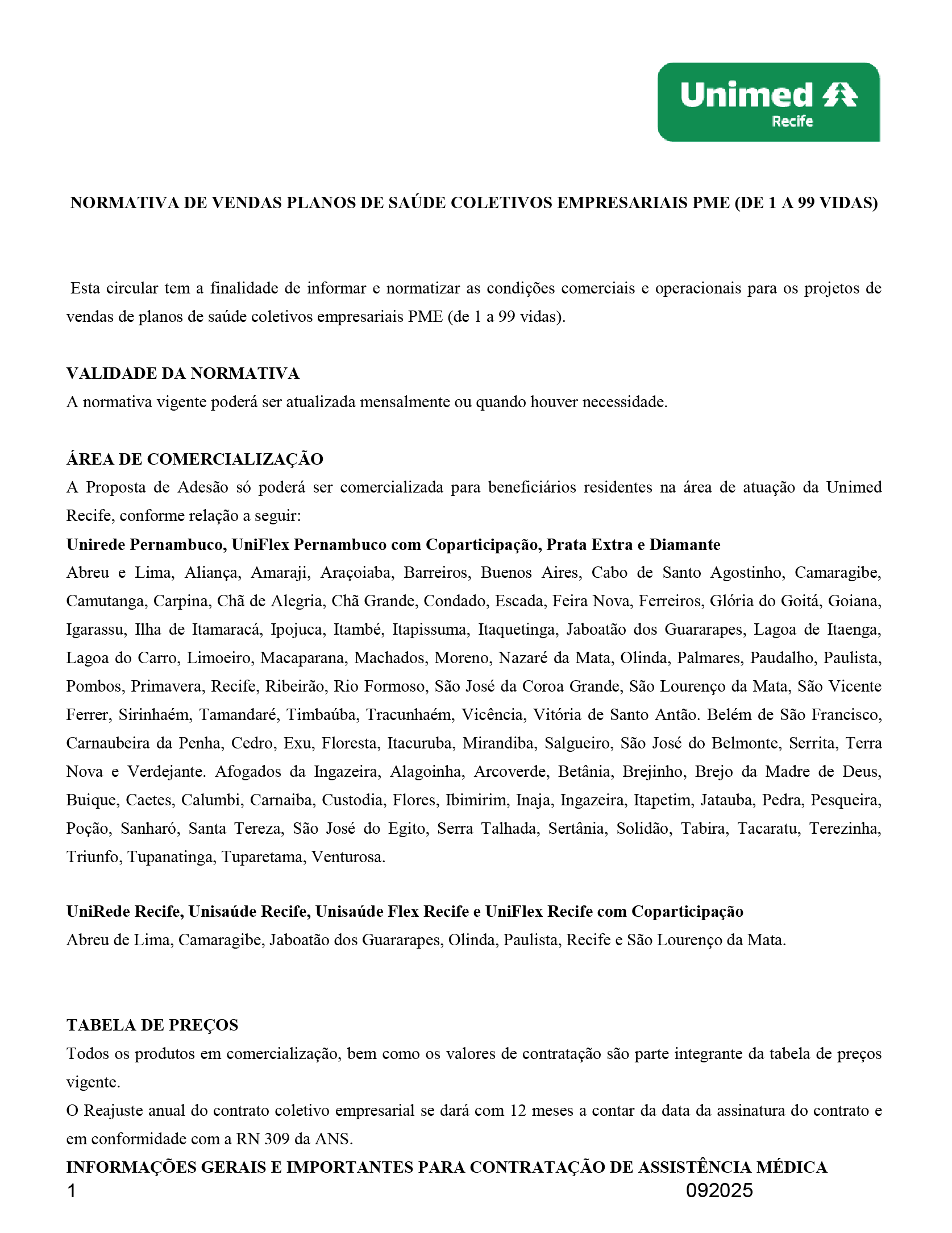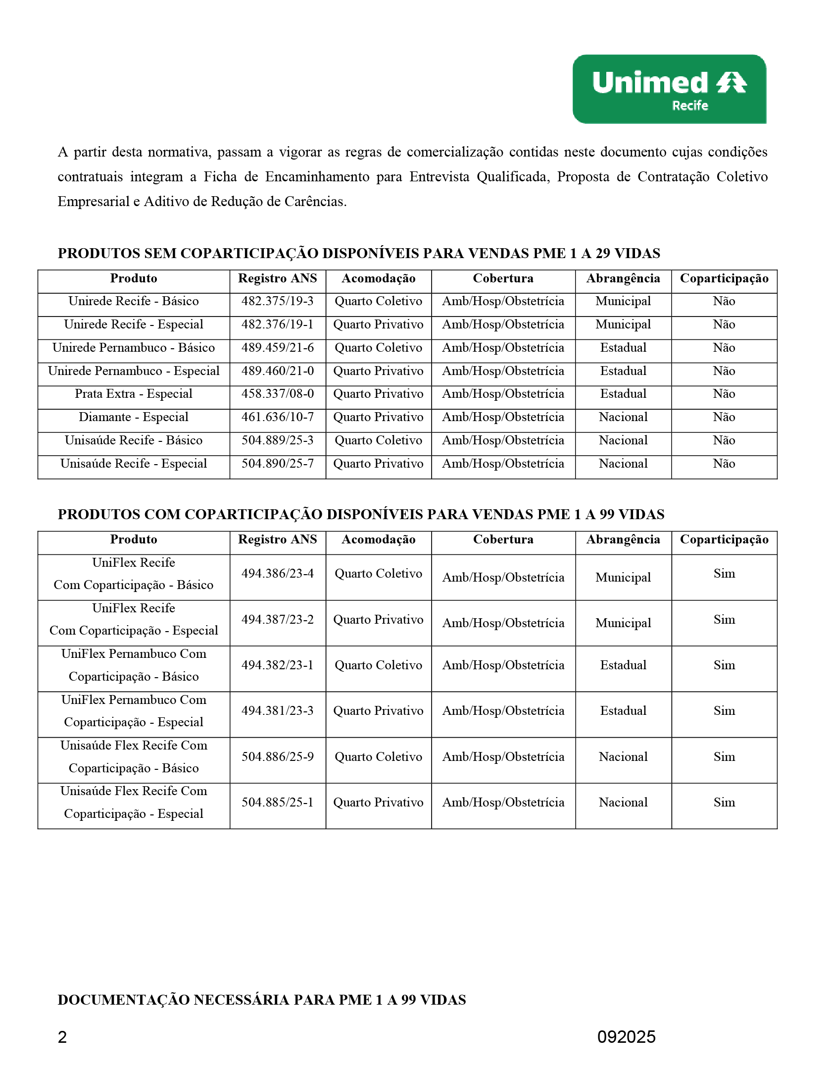 - UniRede Recife e UniFlex Recife com Coparticipação