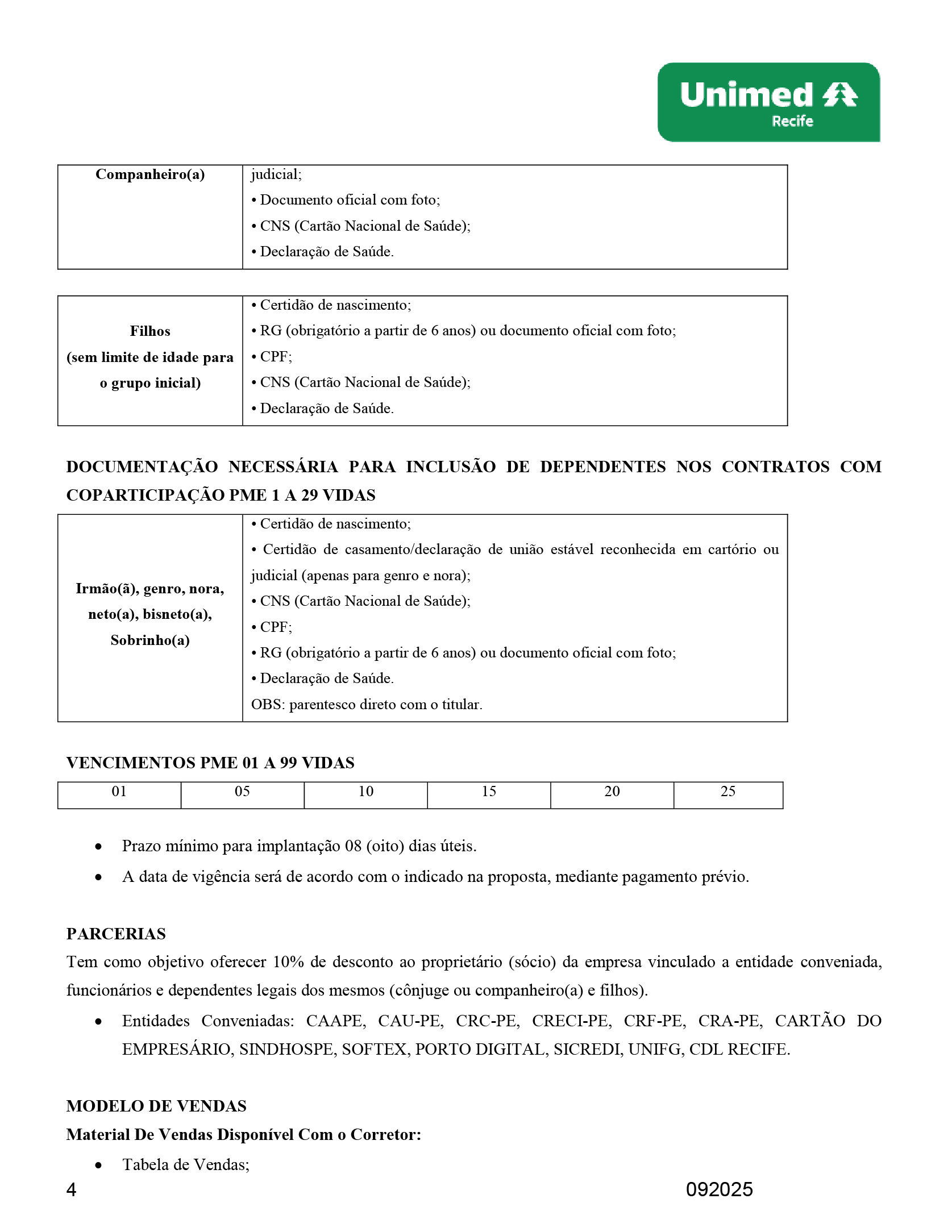 - Documentação dos Dependentes - Planos c/ Coparticipação (1 a 29 vidas)