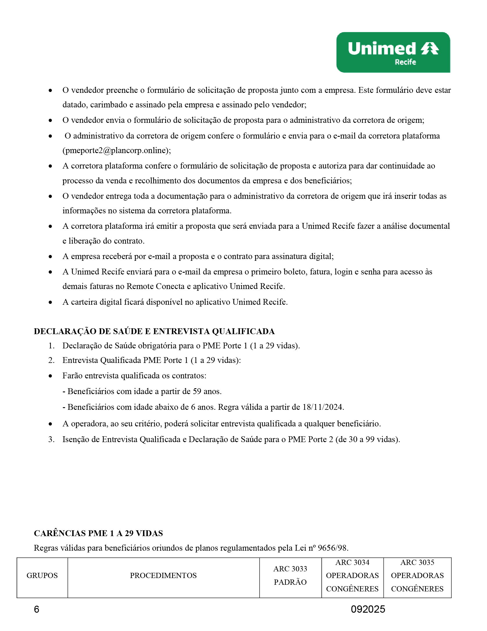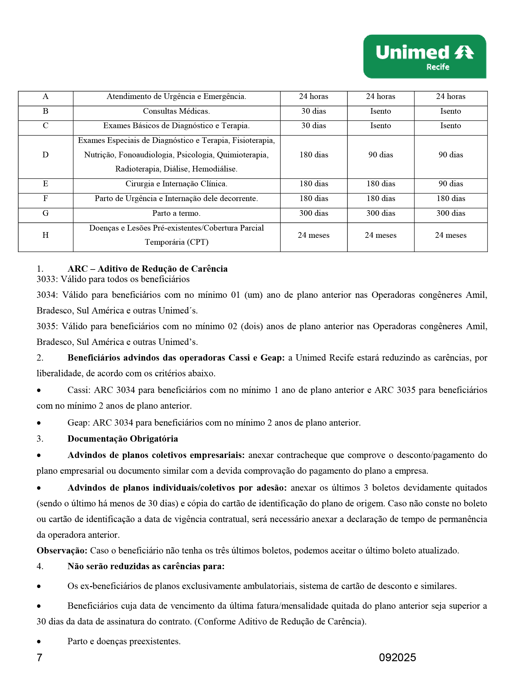 ³ Para beneficiários oriundos das operadoras: Amil, Bradesco, Sulamérica e Unimeds, será analisada a documentação para possível enquadramento em redução de carência.