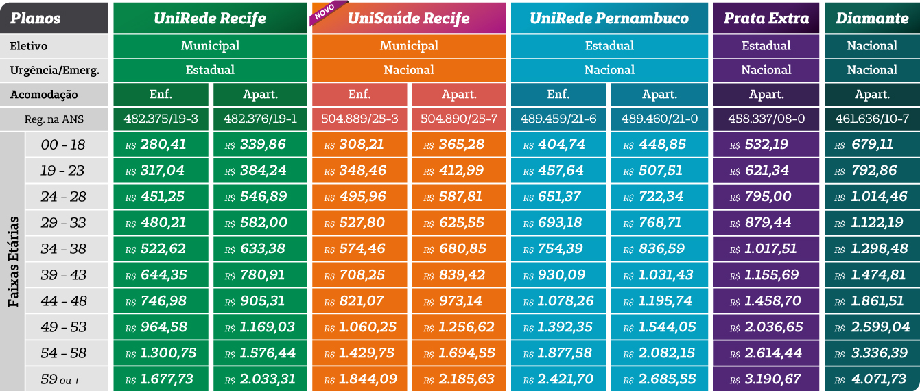 * Real Hospital Português para os planos UniRede Recife (Enfermaria e Apartamento), UniFlex Recife com Coparticipação (Enfermaria e Apartamento), UniRede Pernambuco (Enfermaria e Apartamento), UniFlex Pernambuco com Coparticipação (Enfermaria e Apartamento), UniSaúde Recife (Enfermaria e Apartamento), UniSaúde Flex Recife com Coparticipação (Enfermaria e Apartamento) apenas cirurgia cardíaca pediátrica. ** Exceto atendimento na especialidade Pediatria nos Hospitais Esperança Olinda e Esperança Recife.
